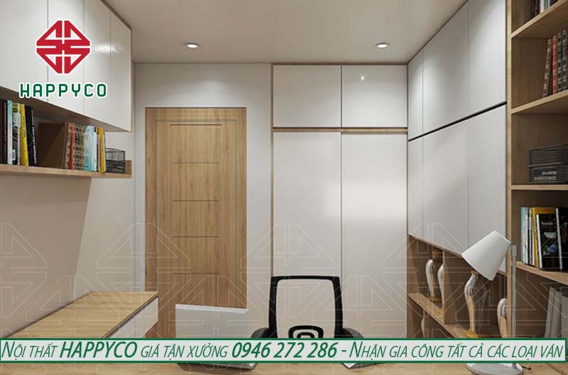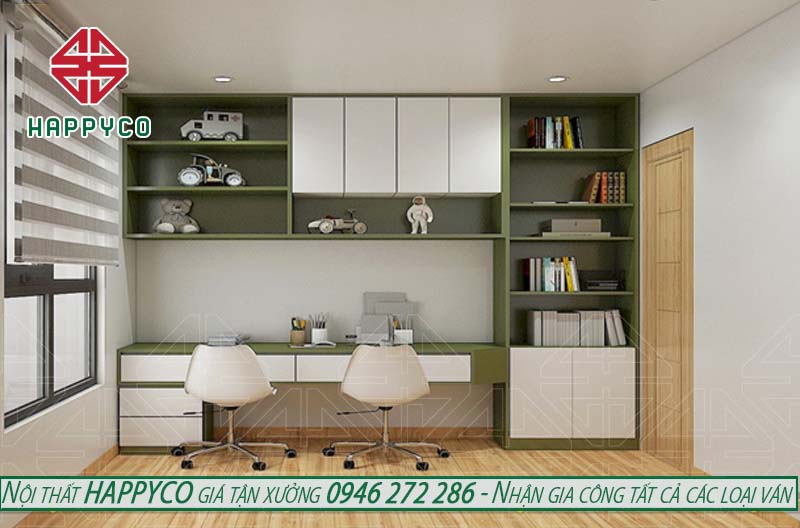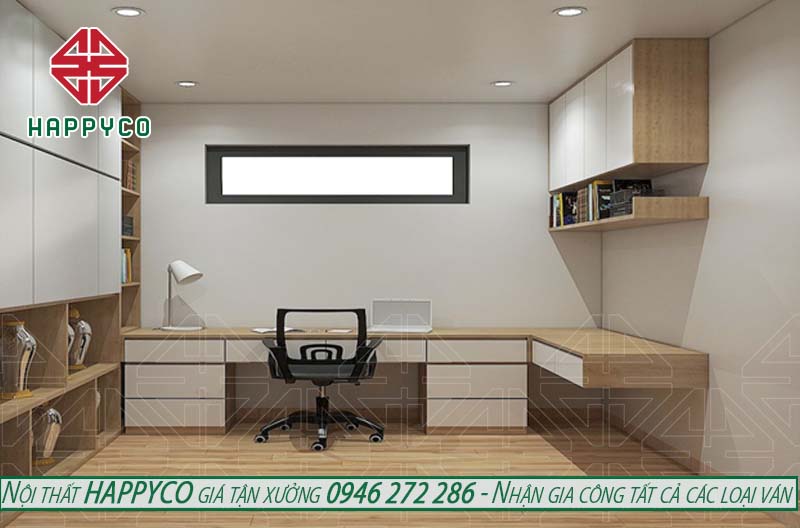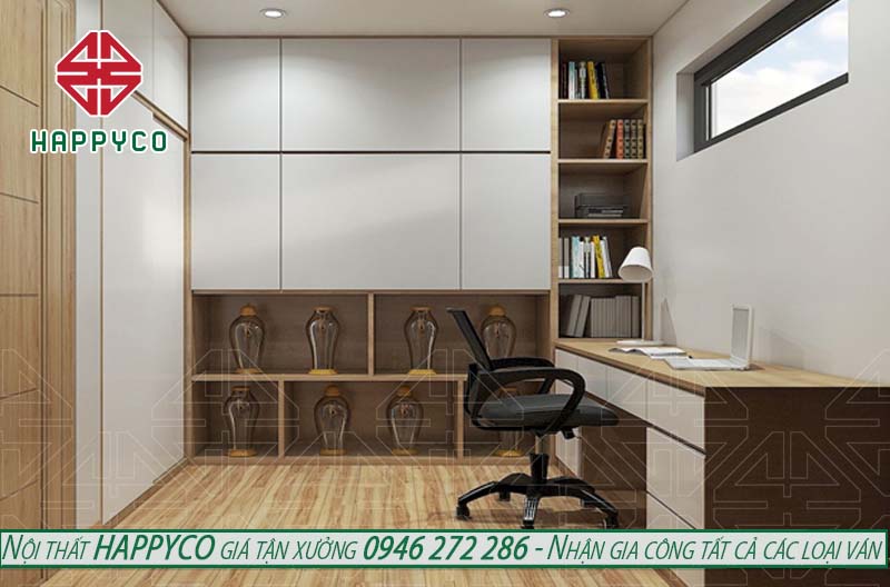 Phòng làm việc được thiết kế tủ kết hợp bàn đa năng