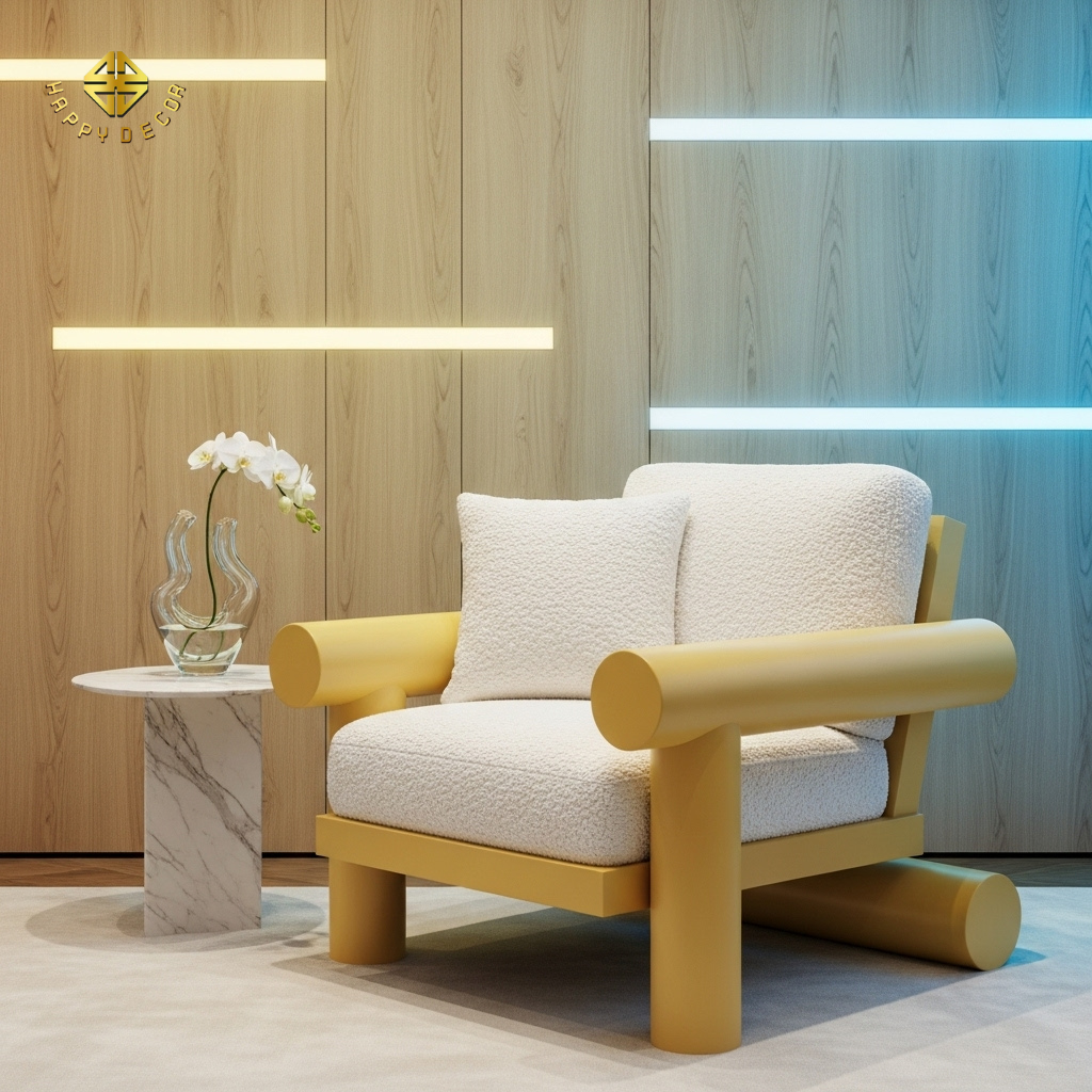 Nếu tối giản là sự tĩnh lặng thì Avant-Basic chính là một bản nhạc Pop rực rỡ. Đây là phong cách kết hợp giữa tư duy nghệ thuật tiền phong (Avant-garde) và những món đồ cơ bản (Basic). Nó biến ngôi nhà thành một bảo tàng nghệ thuật đương đại, nơi những món đồ nội thất gỗ không còn là những khối hộp nâu trầm mặc mà khoác lên mình những bộ cánh đầy màu sắc và hình dáng kỳ ảo.
