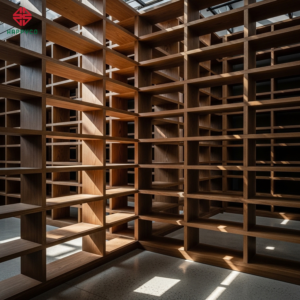 3. Kỹ thuật "Khối hổng" (Negative Space) trong thiết kế kệ mộc