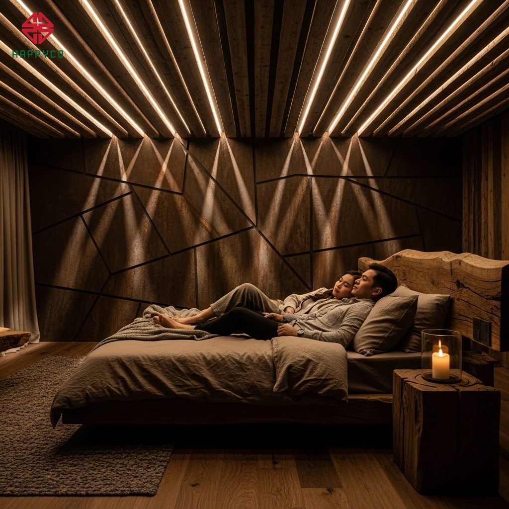 4. Ánh sáng "Chiaroscuro" và kỹ thuật giấu đèn trong khe mộc