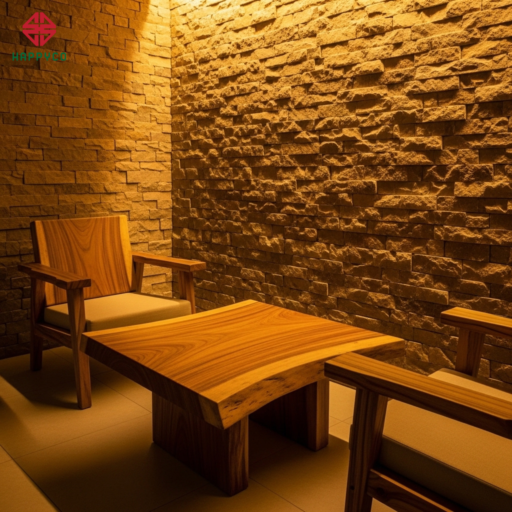 Gỗ và đá tự nhiên chưa qua xử lý hóa chất: Chúng tôi sử dụng các bề mặt gỗ còn nguyên đường vân, đá nhám hoặc đất nung để kích thích xúc giác. Việc chạm vào một mặt bàn gỗ mộc hay sàn đá mát lạnh mang lại cảm giác kết nối mạnh mẽ với đất mẹ, điều mà những vật liệu công nghiệp bóng bẩy không bao giờ làm được.
