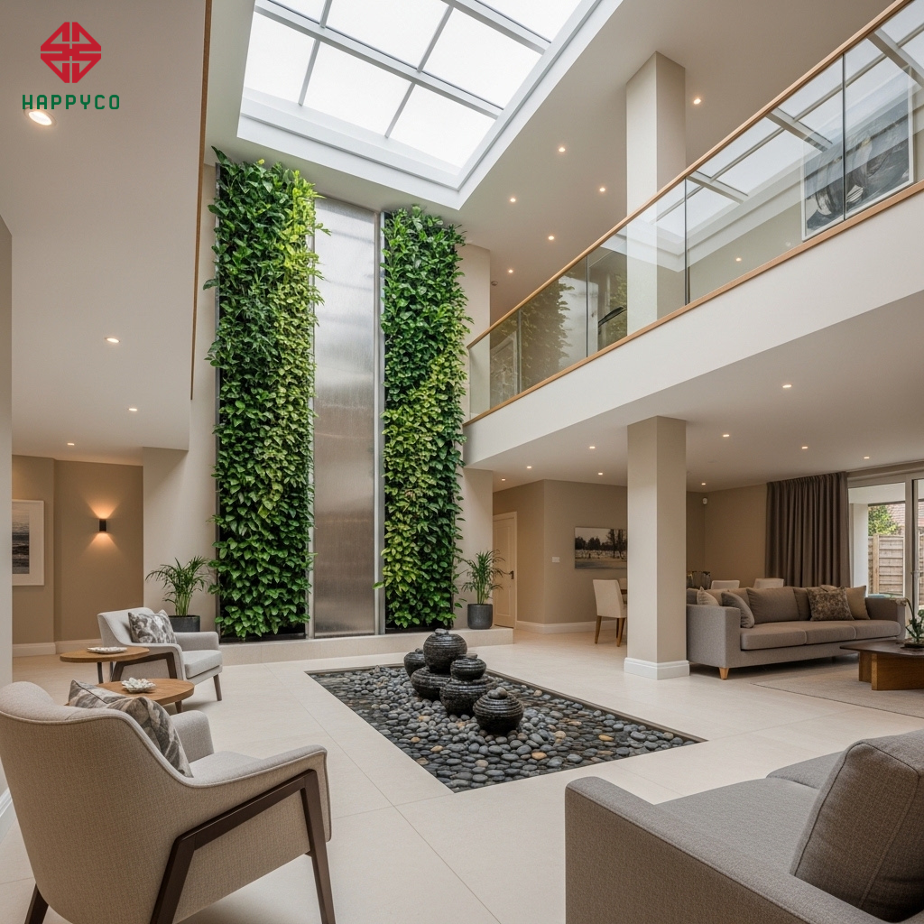 Sự chỉn chu trong từng chi tiết hoàn thiện: Từ việc xử lý các mối nối giữa sàn gỗ và bồn cây đến việc lắp đặt hệ thống lọc không khí bổ trợ, đội ngũ Happy Décor luôn đảm bảo sự tinh tế và chính xác cao nhất. Một không gian xanh chỉ thực sự đẳng cấp khi nó sạch sẽ, bền bỉ và dễ dàng duy trì theo năm tháng.