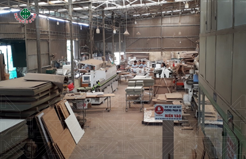 Nhà máy sản xuất nội thất HAPPYCO đặt tại Biên Hòa, hệ thống cơ khí hiện đại, hoạt động năng lực sản xuất liên tục đảm bảo tiến độ, chất lượng và số lượng đơn hàng đáp ứng yêu cầu. Nhà máy của HAPPYCO quy tụ một đội ngũ hùng hậu gồm những công nhân lành nghề được tuyển chọn kỹ càng. Với nhiều năm kinh nghiệm trong lĩnh vực thiết kế, thi công và gia công cắt ván cung cấp nội thất cho nhiều công trình.