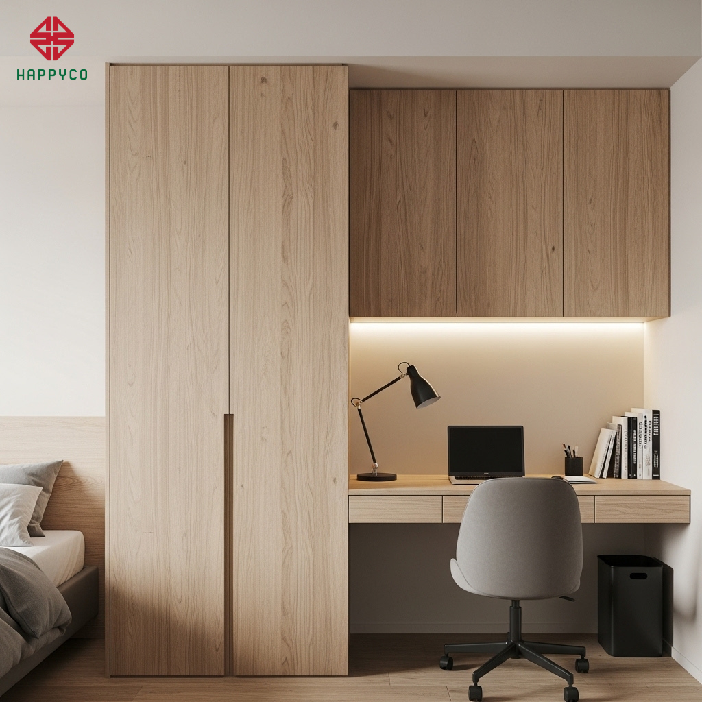 Tại Happy Décor, chúng tôi không chỉ thiết kế bàn ghế; chúng tôi kiến tạo giải pháp "Cá nhân hóa không gian chung". Bằng kỹ thuật mộc Module hiện đại trên nền ván HMR của Kho Mộc, chúng tôi biến góc làm việc thành một thực thể "tàng hình", bảo vệ sự yên tĩnh tuyệt đối cho người bạn đời mà vẫn đảm bảo hiệu suất công việc tối đa.