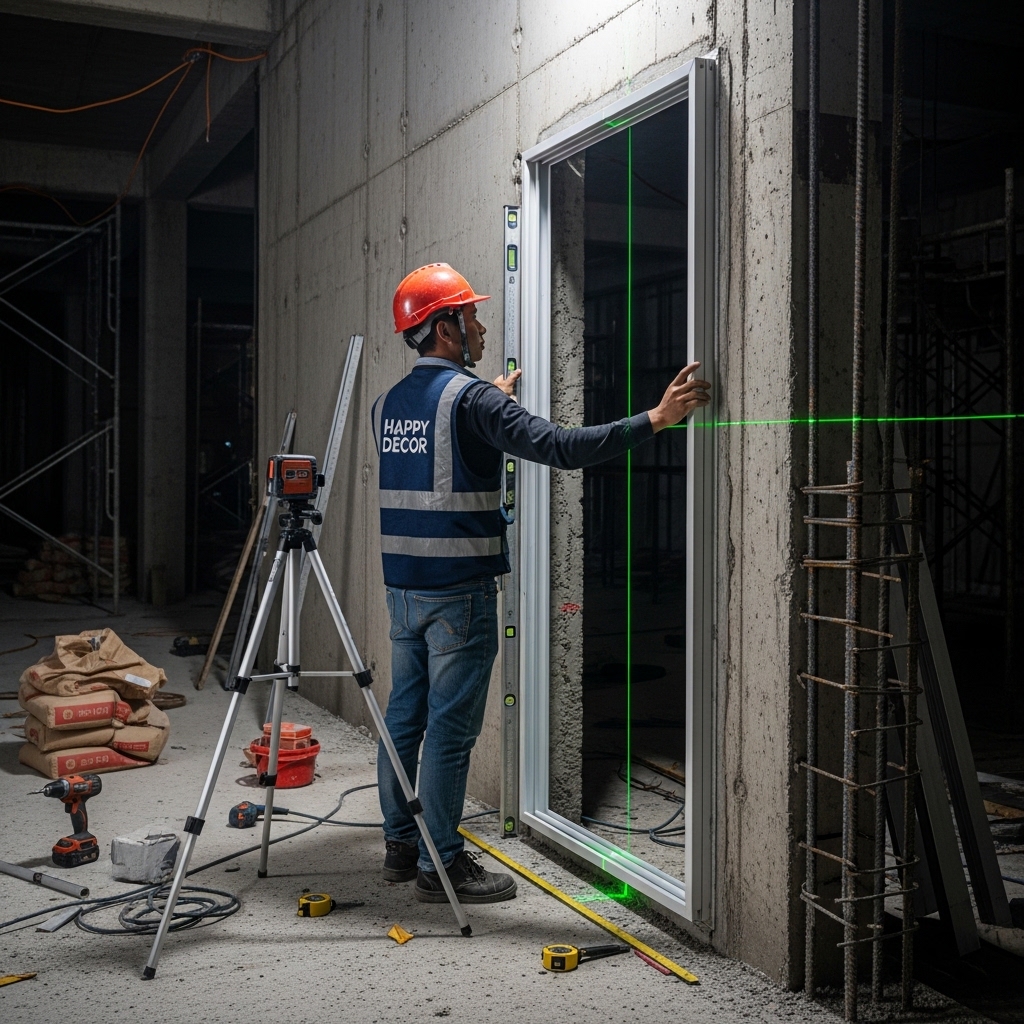 Quy trình thi công: Hệ khuôn nhôm này được lắp đặt ngay từ giai đoạn xây thô hoặc trước khi ốp vách gỗ. Khuôn được chôn âm hoàn toàn vào trong tường, sau đó thạch cao hoặc gỗ ốp sẽ phủ kín mép khuôn.