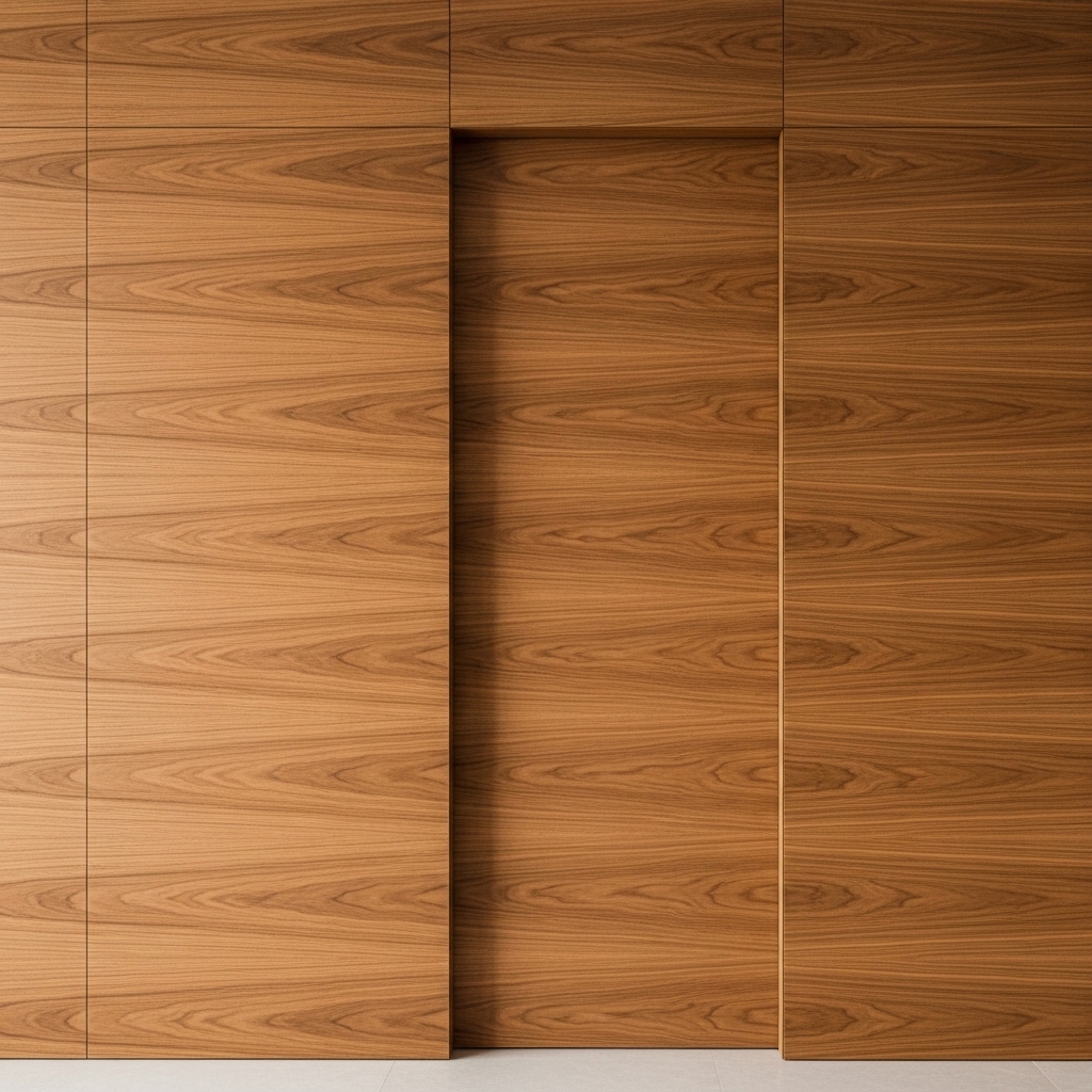 Kỹ thuật chọn gỗ: Tại xưởng Happy Décor, chúng tôi sử dụng kỹ thuật Book-matching hoặc xẻ gỗ từ cùng một súc gỗ lớn. Vân gỗ sẽ chạy liên tục từ mảng vách bên trái, băng qua cánh cửa và tiếp diễn sang mảng vách bên phải.