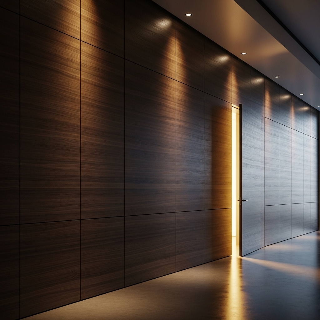 Trong tiêu chuẩn thiết kế cao cấp năm 2026, những bộ khuôn cửa dày cộp và nẹp chỉ bao quanh đã trở nên lỗi thời. Chúng chia cắt không gian và làm mất đi sự liên tục của các mảng miếng trang trí. Happy Décor ứng dụng kỹ thuật Invisible Doors (Cửa giấu khuôn/Cửa phẳng tường). Đây là sự kết hợp khắt khe giữa kỹ thuật cơ khí chính xác và nghệ thuật mộc, nơi cánh cửa không còn là "lối đi" mà là một phần của bức tường gỗ trang trí kịch trần, tạo nên một không gian không giới hạn.
