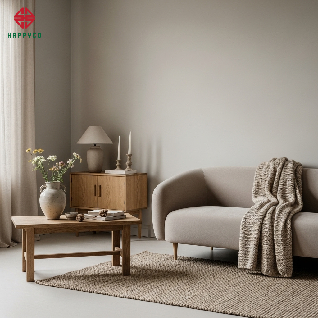 Sức mạnh của tông màu trung tính: Các gam màu kem, beige, xám cát kết hợp với màu gỗ tự nhiên không bao giờ lỗi mốt. Chúng tạo ra một phông nền tĩnh lặng, giúp tâm trí con người dễ dàng thả lỏng và cởi mở hơn trong giao tiếp.