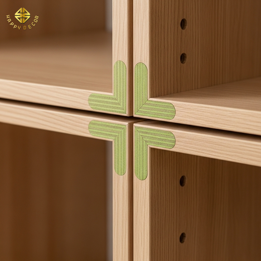 Độ bền liên kết: Các module được liên kết với nhau bằng hệ cam chốt thông minh thay vì bắn vít trực tiếp. Cốt gỗ HMR nén tỷ trọng cao của Kho Mộc giúp các vị trí liên kết này cực kỳ chắc chắn, không bị lỏng lẻo theo thời gian. Đặc biệt, nếu sau này gia chủ muốn chuyển nhà hoặc thay đổi thiết kế, họ hoàn toàn có thể tháo rời các module này và tái lắp đặt dễ dàng – một sự tiết kiệm dài hạn mà nội thất truyền thống không bao giờ làm được.