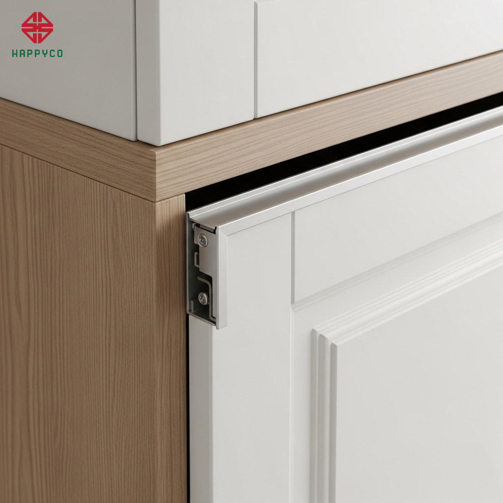 Thanh nẹp cân cánh (Door Straightener): Happy Décor tích hợp hệ thanh nẹp hợp kim nhôm âm bên trong cánh tủ. Thanh nẹp này có tác dụng điều chỉnh độ phẳng, giúp cánh tủ luôn thẳng tắp dù thời tiết thay đổi.