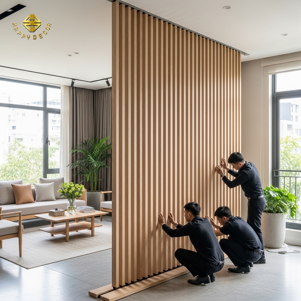 2. Hệ Vách Gỗ "Tự Đứng" (Freestanding Wood Wall)