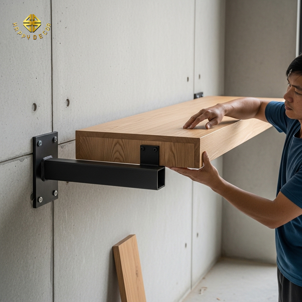 Đây không đơn thuần là việc bắt vít vào tường, mà là một bài toán phối hợp giữa cơ khí chịu lực, kỹ thuật gia cố lõi thép và nghệ thuật xử lý bề mặt gỗ để tạo ra những món đồ nội thất như đang "lơ lửng" giữa không trung.