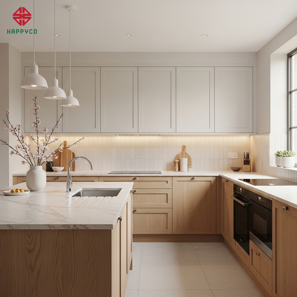 2. Thay thế Acrylic bằng Melamine "Siêu mờ" (Super Matte) cho hệ tủ bếp