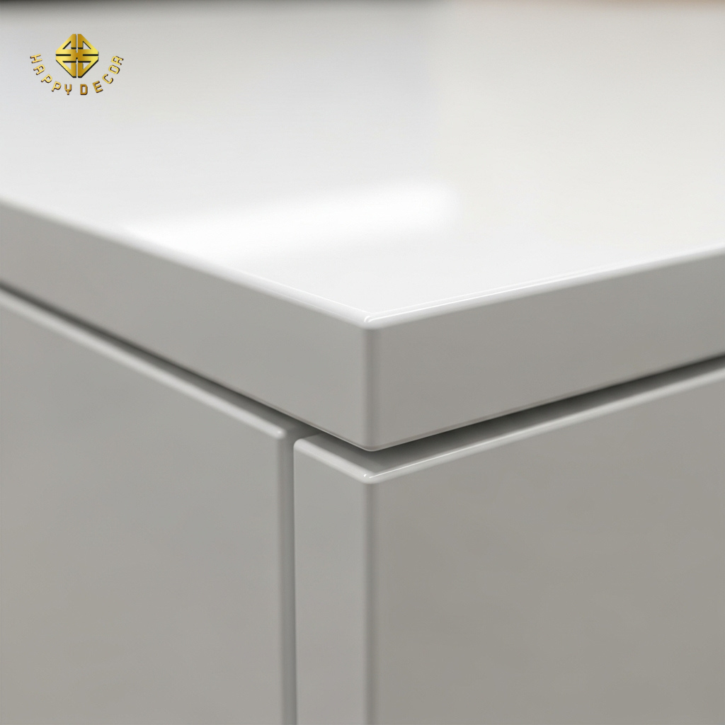 Đột phá công nghệ: Happy Décor sử dụng máy dán cạnh tự động công nghệ Laser hoặc keo Pur cao cấp. Nhiệt độ cực cao làm nóng chảy lớp nhựa nẹp và liên kết trực tiếp vào cốt gỗ mà không để lại đường viền màu đen (đường line) thường thấy.