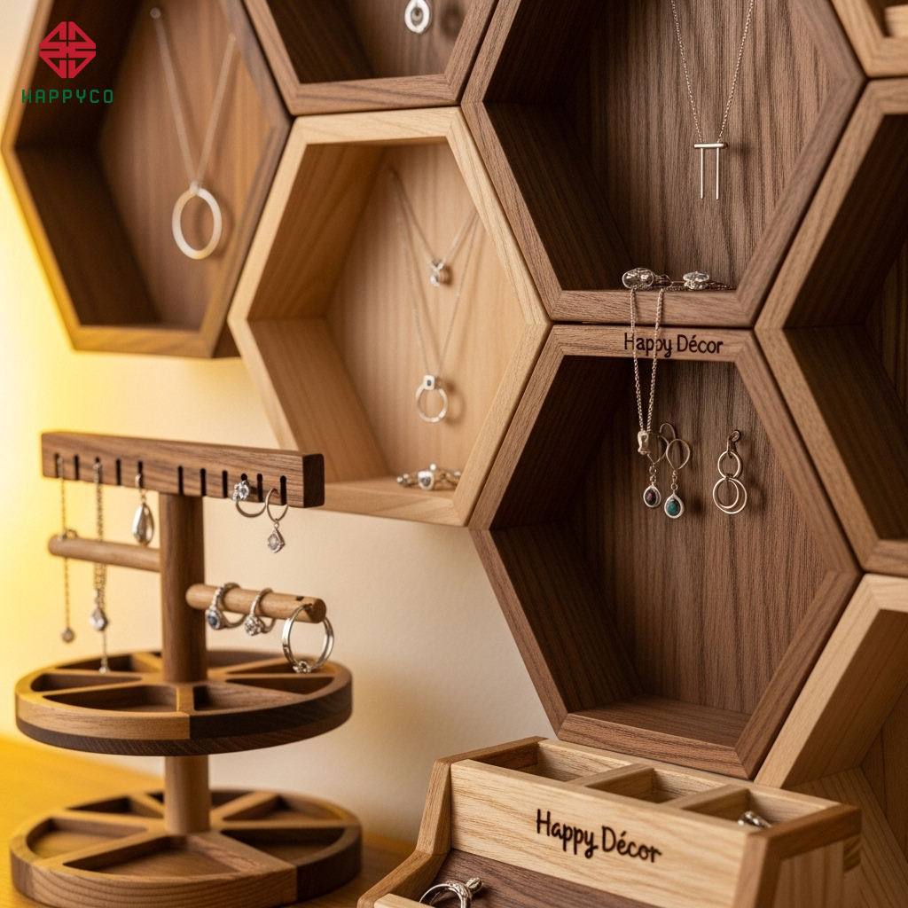 Với tư duy "Net-Zero Waste" (Không rác thải gỗ), những mẩu ván thừa từ quá trình Nesting được các kiến trúc sư của Happy Décor tái thiết kế thành các món đồ trang trí nhỏ nhưng cực kỳ tinh tế.