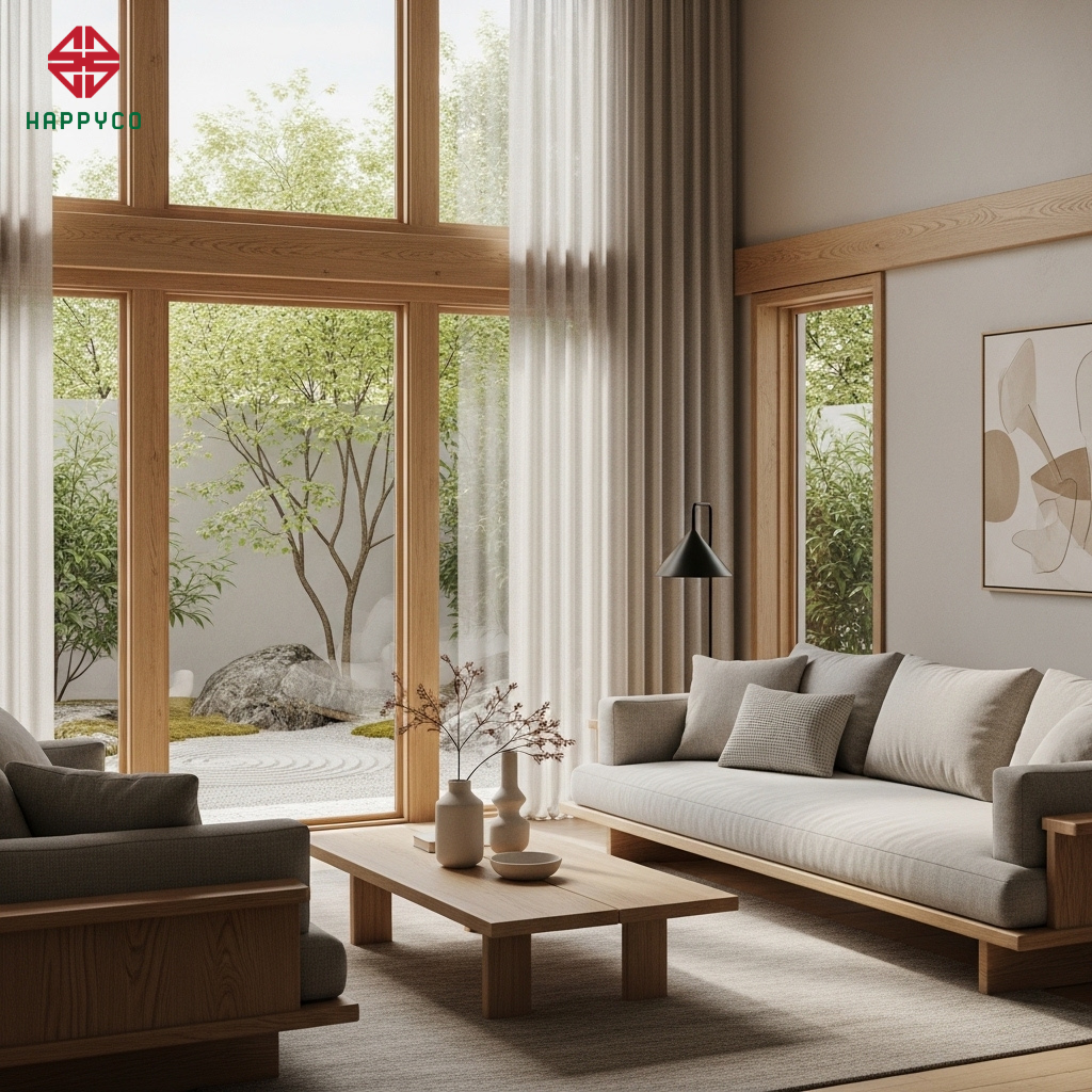 Tại Happy Décor, chúng tôi khai thác phong cách này để biến ngôi nhà thành một chốn "về" đúng nghĩa, nơi mọi ồn ào đô thị được dừng lại sau cánh cửa, nhường chỗ cho sự bình yên và tinh tế.