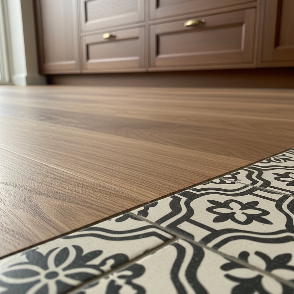 Thi công thực tế chuẩn xác: Sự tỉ mỉ trong khâu lắp đặt của Happy Décor đảm bảo các điểm giao cắt giữa sàn gỗ và gạch bông đạt độ phẳng tuyệt đối. Sự chỉn chu này không chỉ thể hiện đẳng cấp thi công mà còn mang lại sự an toàn và bền vững cho công trình, xứng đáng với niềm tin của những gia chủ sành sỏi nhất.