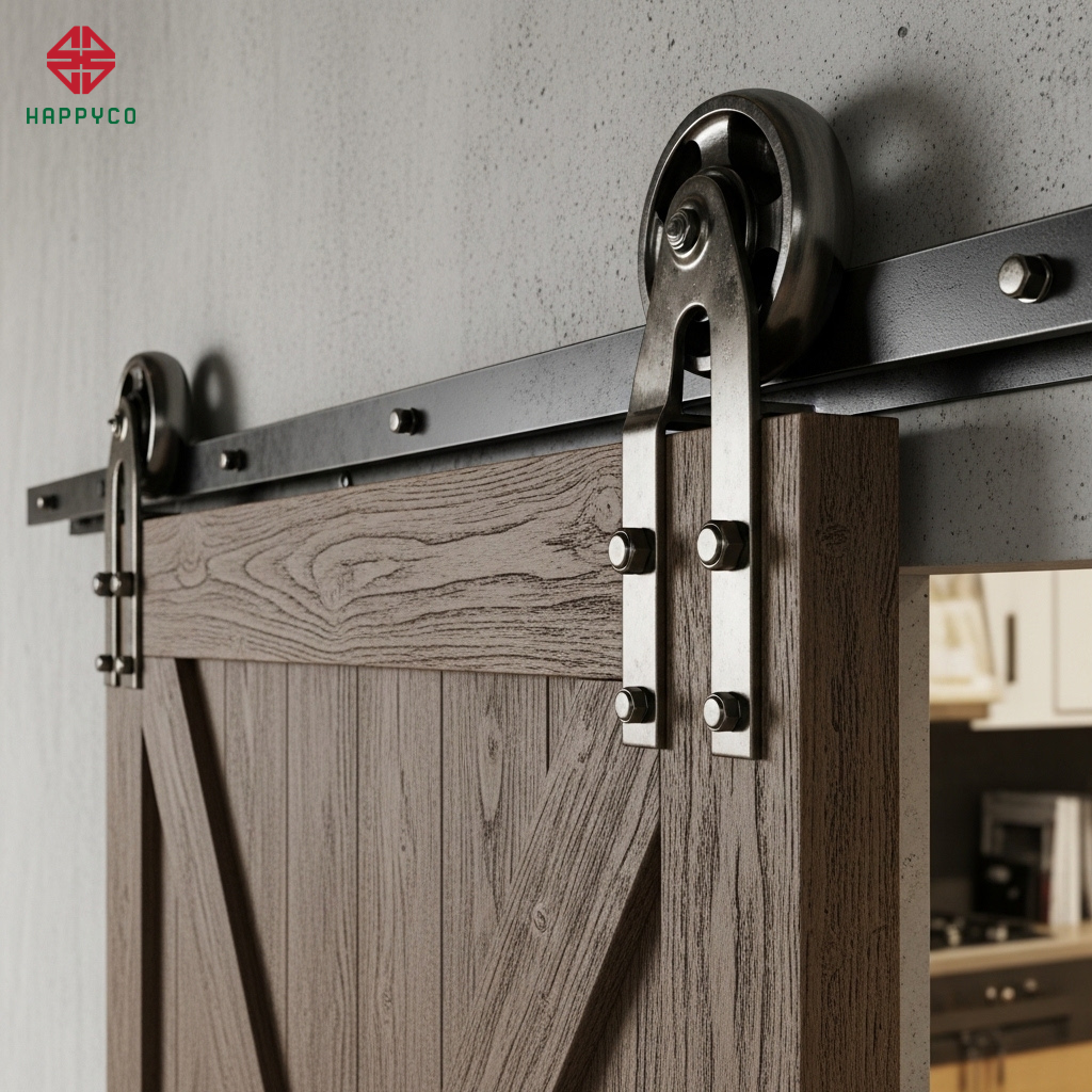 Hệ ray trượt hở (Barn Door): Đối với tủ kho hoặc cửa phòng, chúng tôi sử dụng hệ ray treo bằng thép sơn tĩnh điện lộ ra ngoài. Sự chuyển động của các bánh xe thép trên thanh ray mang lại cảm giác vận hành cơ khí đầy thú vị.