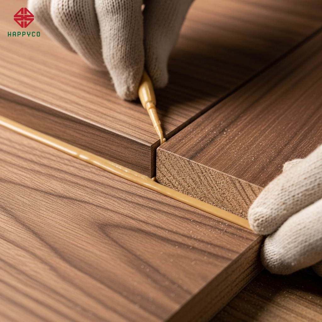 Ghép âm dương (Tongue and Groove): Happy Décor phay rãnh âm dương tại các cạnh ván. Khi lắp ghép, các tấm ván "khóa" vào nhau, triệt tiêu sự co ngót tự nhiên của gỗ công nghiệp.