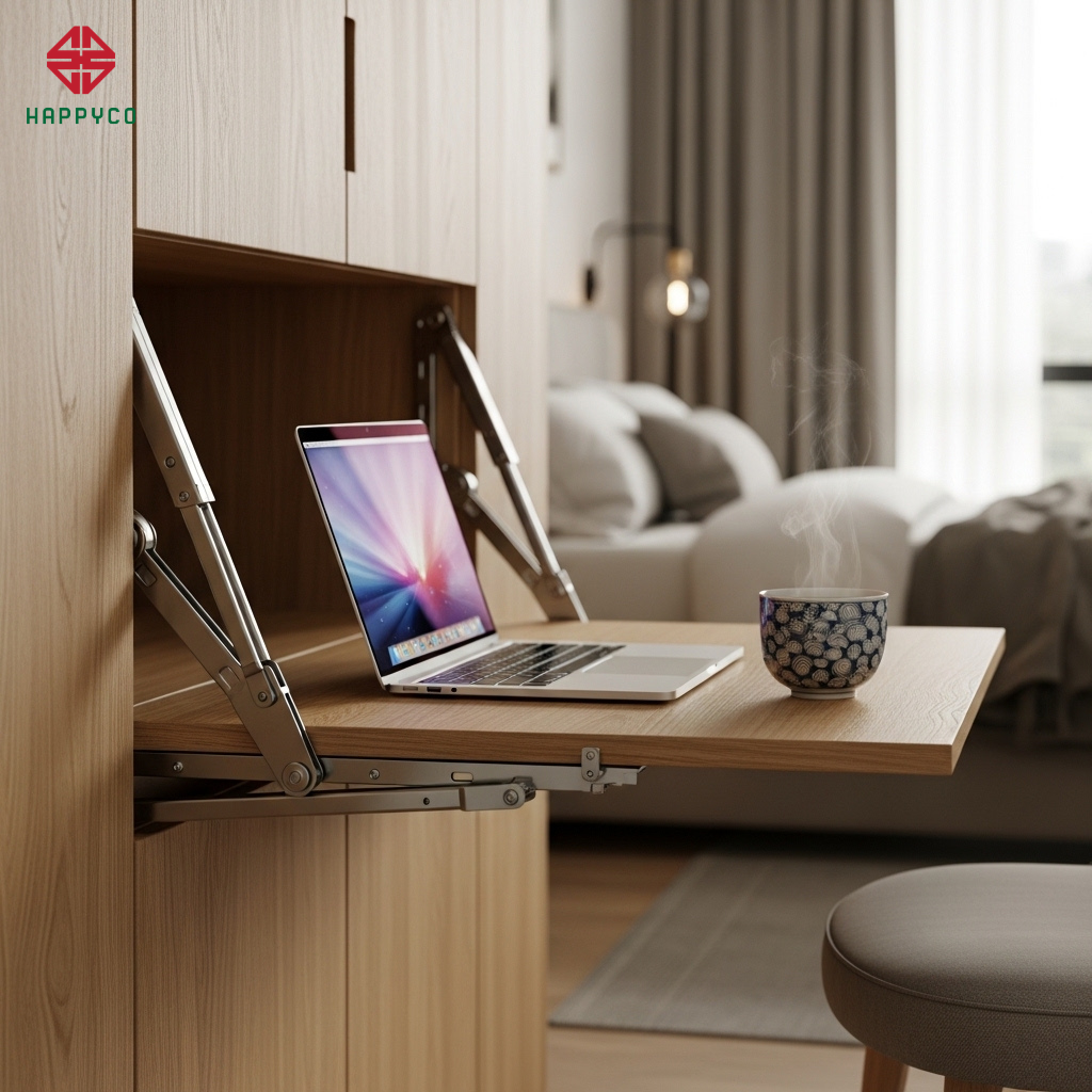 1. Kỹ thuật "Bàn làm việc lật âm tủ" – Giải phóng diện tích sàn
