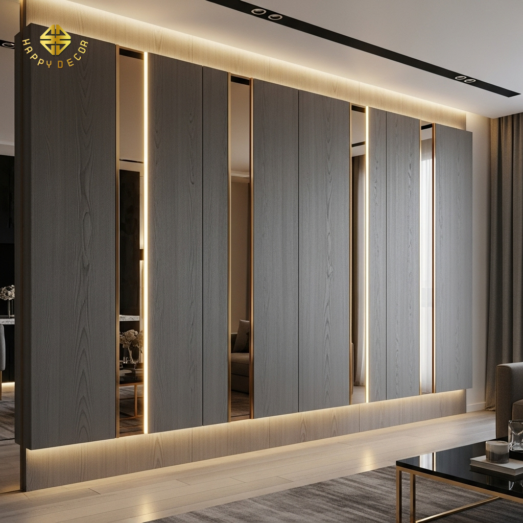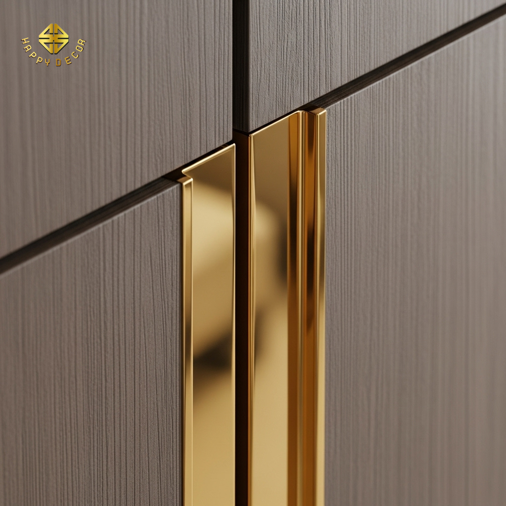 Trong các bản vẽ 3D, những đường chỉ vàng gương (Gold PVD) hay nẹp nhôm đen mờ trên cánh tủ áo, vách đầu giường luôn trông rất lung linh. Tuy nhiên, khi ra thực tế, nếu không nắm vững kỹ thuật cơ khí và tính chất của gỗ, các thanh nẹp này rất dễ bị cong vênh, bong tróc hoặc để lộ những vết keo nhem nhuốc.