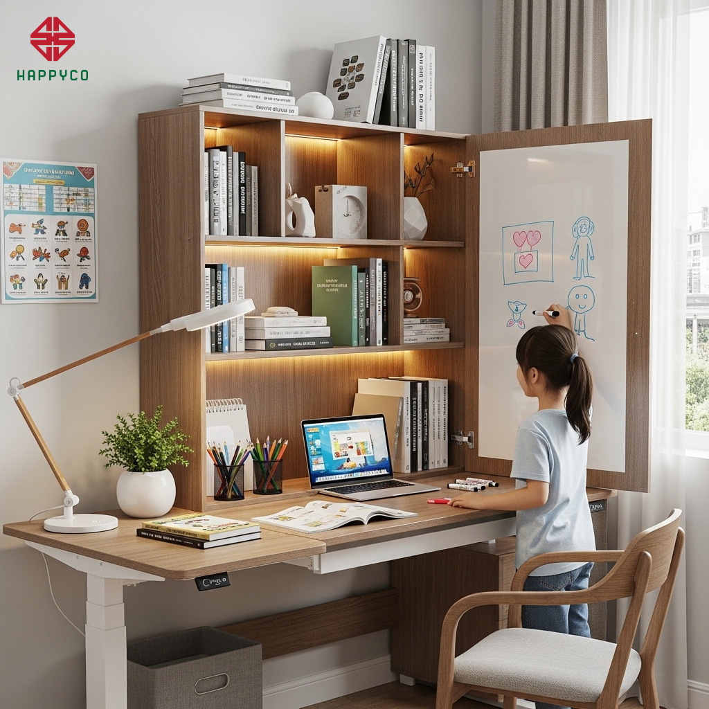 Giai đoạn từ tiểu học đến trung học là lúc nhu cầu học tập của trẻ thay đổi mạnh mẽ nhất. Hệ bàn học của Happy Décor được thiết kế để "vận động" theo nhu cầu đó.