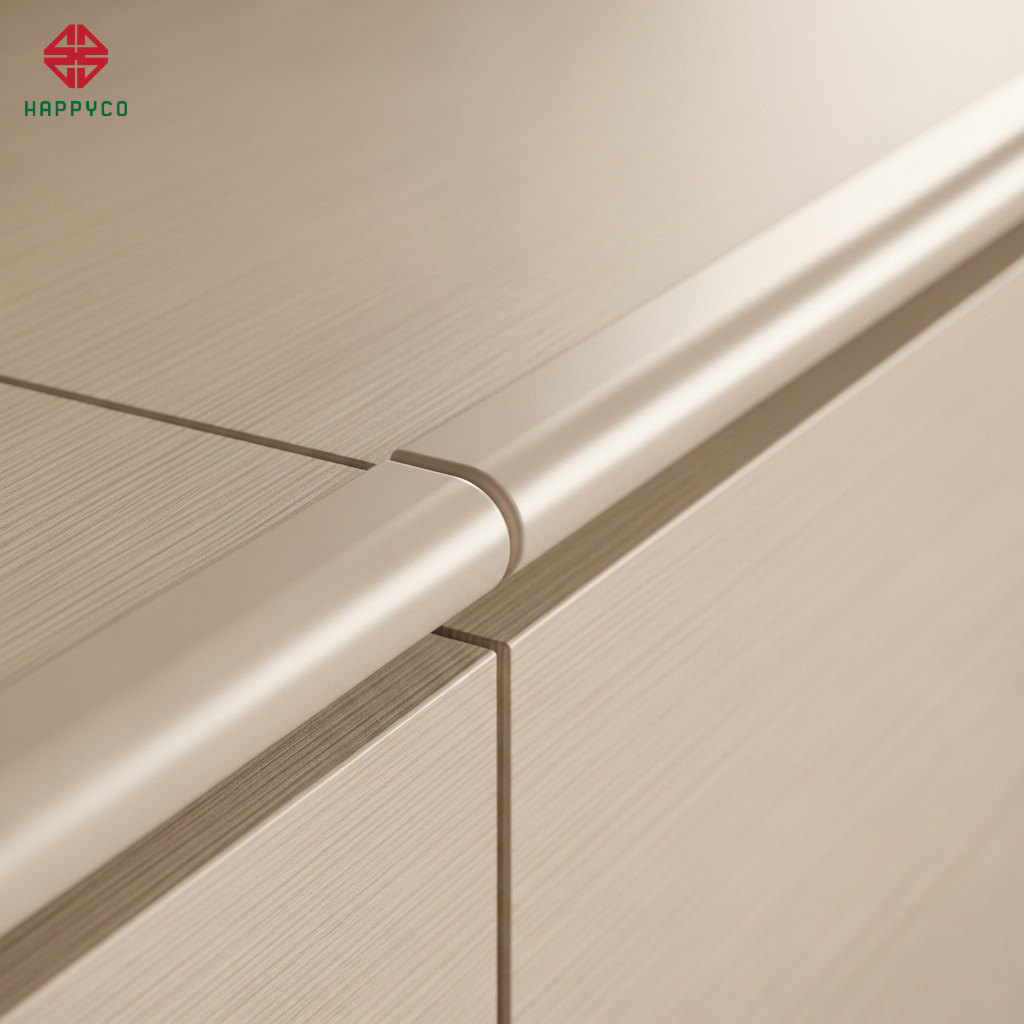 Kỹ thuật Bo góc (Radius Corner): Tại các cạnh tủ gần lối đi hoặc đối diện giường, chúng tôi sử dụng máy CNC để bo tròn góc ván. Điều này không chỉ giúp dòng khí di chuyển nhu hòa, tránh sự xung sát mà còn đảm bảo an toàn tuyệt đối cho người sử dụng trong bóng tối.