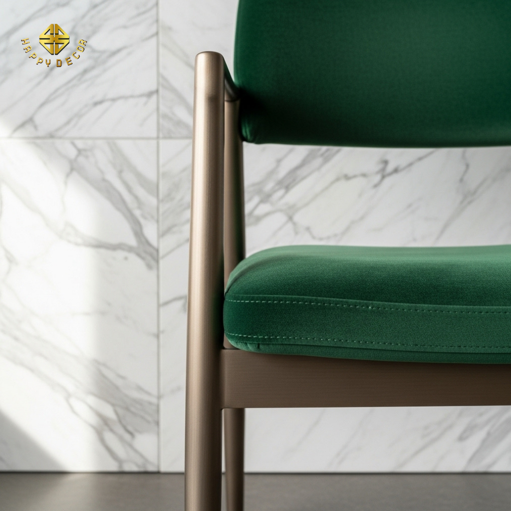 Vật liệu hiện đại: Kim loại mạ PVD (vàng gương, đồng xước), kính cường lực, và các loại vải dệt thô cao cấp.
