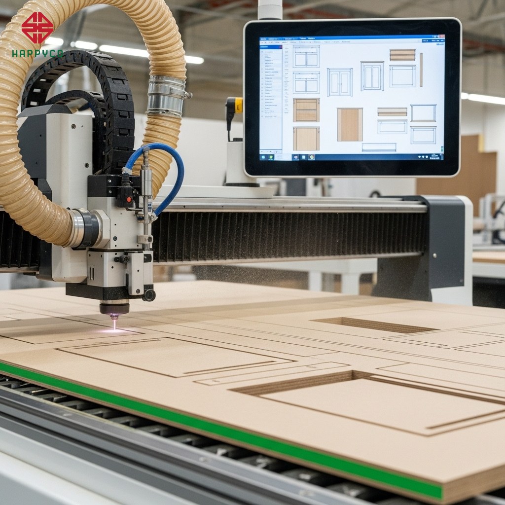 Trong ngành mộc hiện nay, nhiều gia chủ vẫn lầm tưởng rằng thuê thợ đóng đồ rời tại công trình sẽ rẻ hơn đặt hàng sản xuất theo hệ thống. Tuy nhiên, thực tế hoàn toàn ngược lại. Tại Happy Décor, chúng tôi áp dụng Kỹ thuật Module hóa (Modular Furniture) – một quy trình sản xuất bằng máy CNC hiện đại, giúp tối ưu hóa vật tư ván công nghiệp và giảm thiểu tối đa các chi phí phát sinh không đáng có.