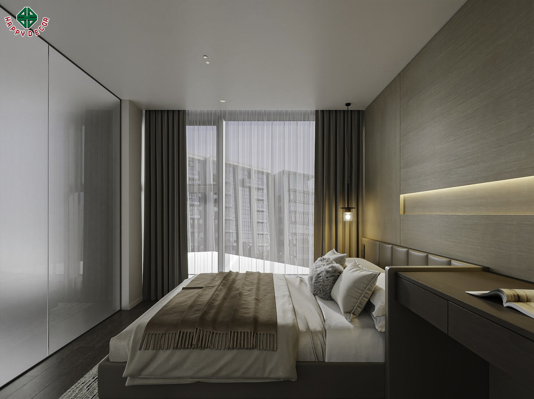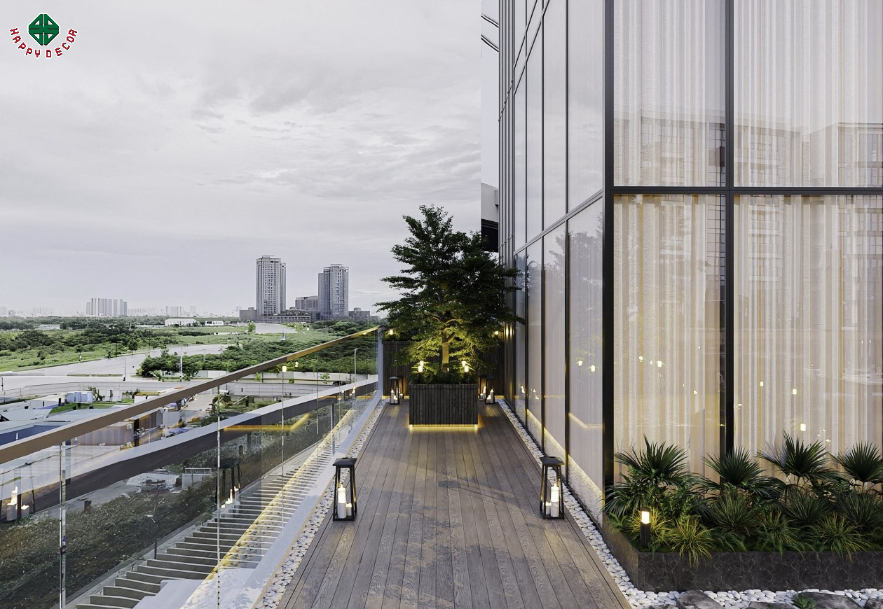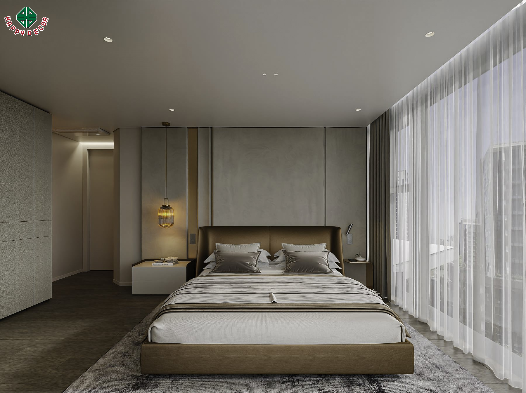 - Cửa kính chạm trần panorama: Giúp tận dụng tối đa ánh sáng tự nhiên, mở rộng tầm nhìn ra toàn cảnh thành phố.