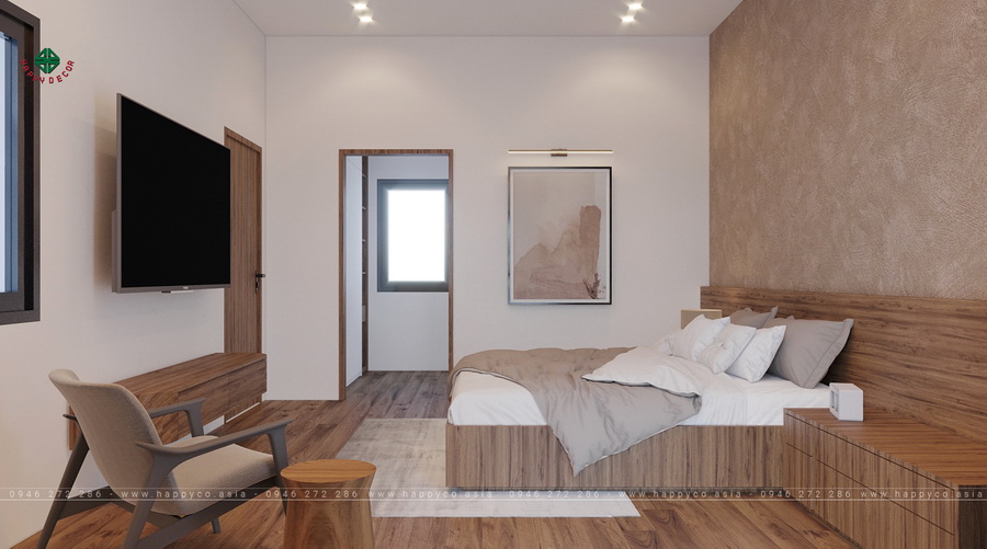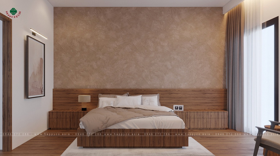 Do căn biệt thự có diện tích lớn nên gia chủ chúng tôi đã chọn thiết kế 2 phòng ngủ master với nội thất bằng gỗ rất tiện nghi và bắt mắt. Không giống như Phòng 01, căn phòng này có màu nâu sẫm hấp dẫn hơn. Không gian phòng ngủ chính thứ 2 trông hiện đại hơn một chút.