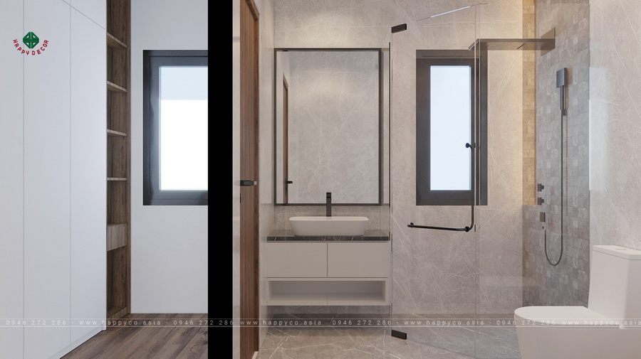 Khu vực phòng tắm được thiết kế thông thoáng, sạch sẽ đáp ứng nhu cầu sử dụng của gia chủ.