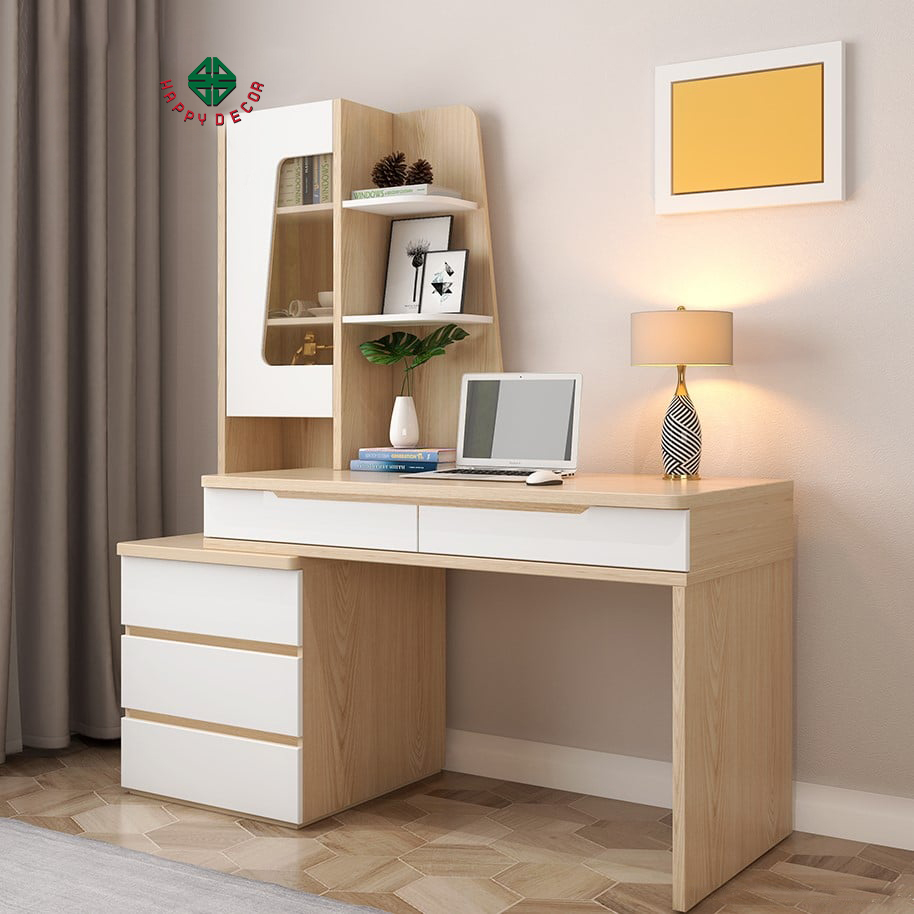 Thiết kế thông minh và tiện ích với nhiều ngăn kéo và kệ để đựng sách, tài liệu học tập