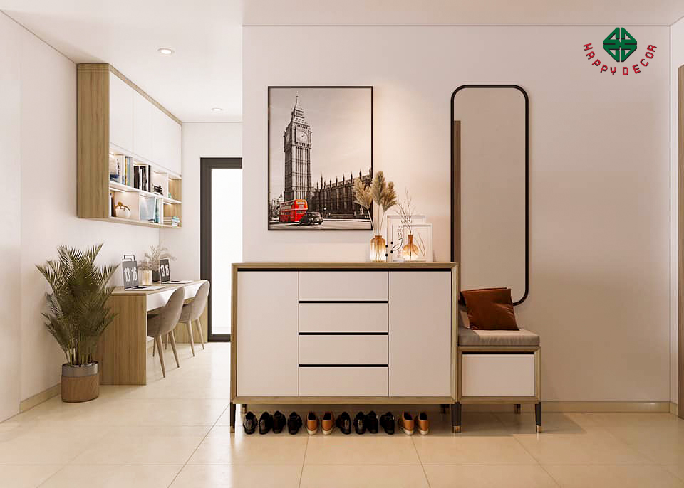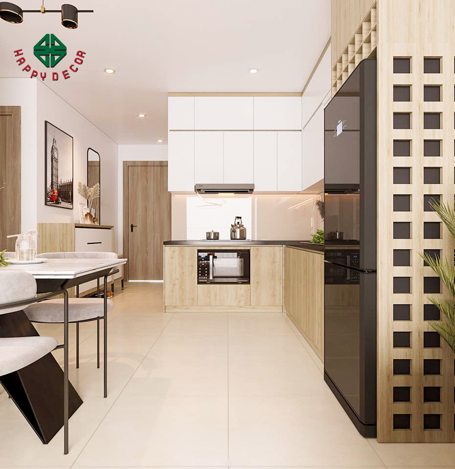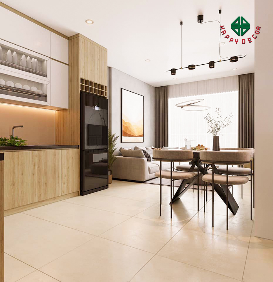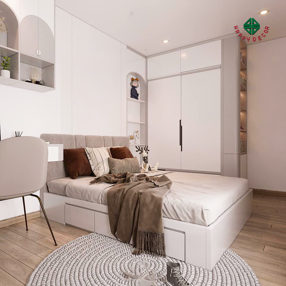 Về phần nội thất, Happy Decor cũng lựa chọn các sản phẩm hiện đại mang màu sắc trung tính tạo điểm nhấn nổi bật giúp căn phòng có chiều sâu và sinh động hơn.