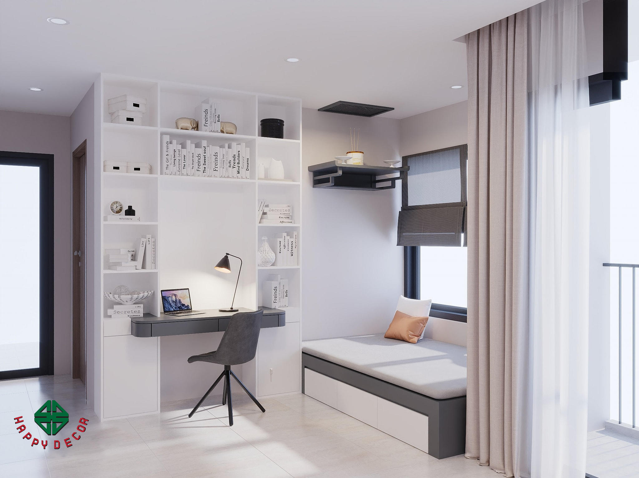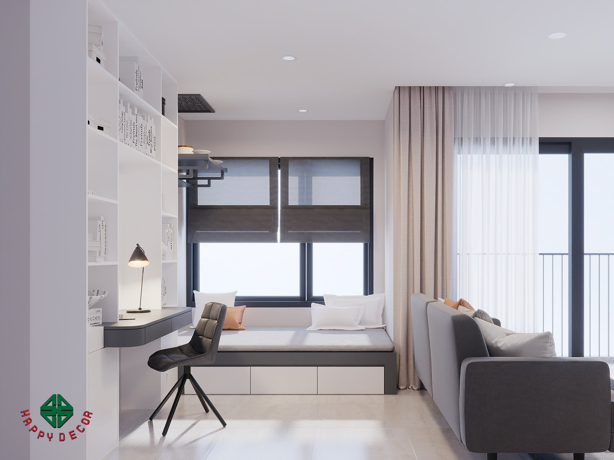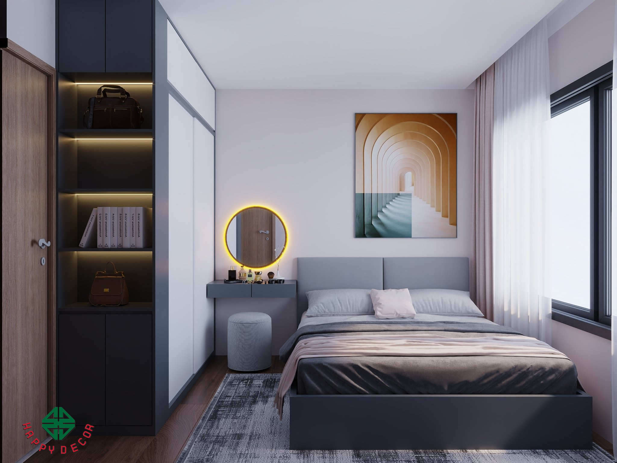 Thiết kế nội thất chung cư 70m2 2 phòng ngủ đơn giản mà đẹp bằng gỗ công nghiệp MDF chống ẩm tại Biên Hòa - Đồng Nai