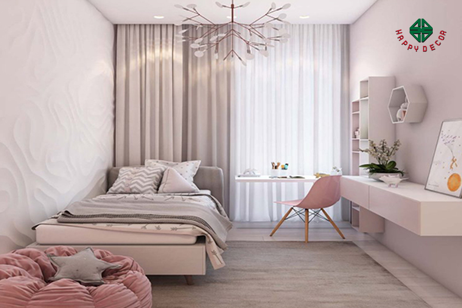 Căn phòng ngủ cho bé gái với sự kết hợp của những gam màu pastel nhẹ nhàng. Gam màu hồng là gam màu nhiều bé gái yêu thích, vì vậy mà bố mẹ cần dựa trên sở thích để lựa chọn những món đồ trang trí phù hợp.