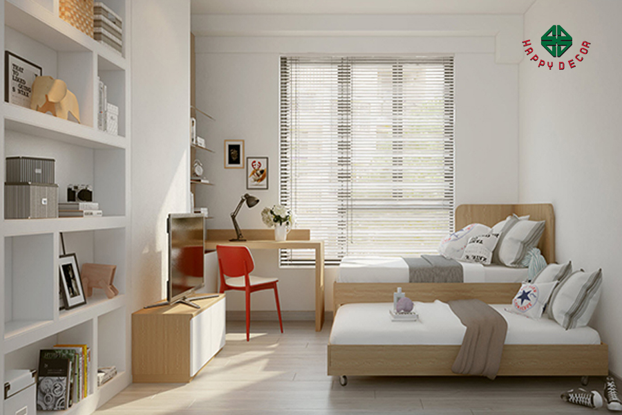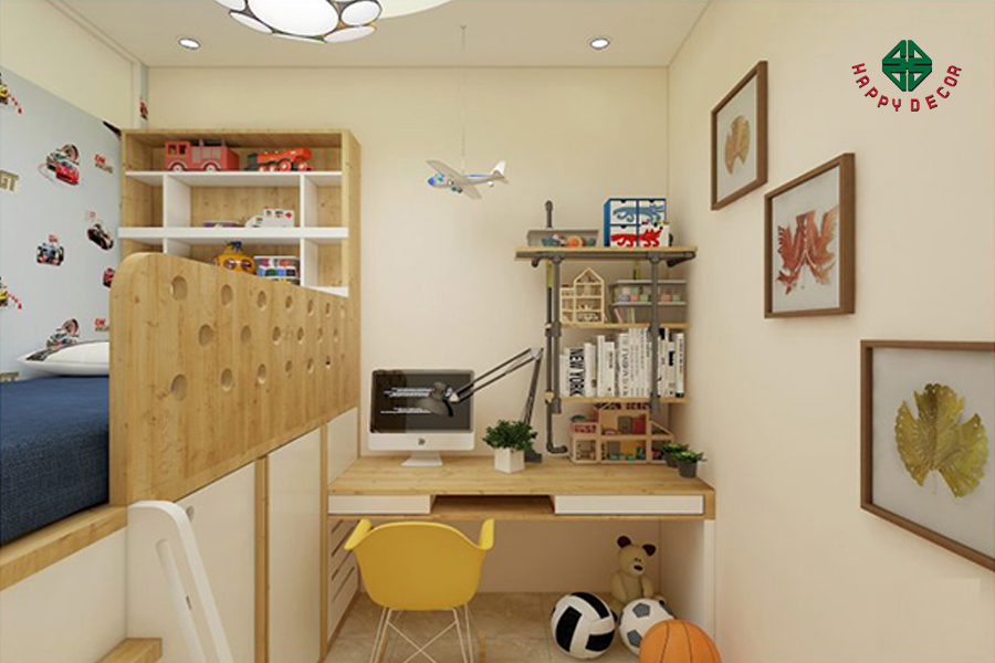Khi thiết kế phòng ngủ cho bé, ngoài việc nắm bắt được sở thích của bé, bạn cần đảm bảo đầy đủ ánh sáng và độ an toàn cho bé trong quá trình vui chơi, học tập. Bạn có thể sử dụng giường tầng có cầu thang lên xuống dễ dàng di chuyển và có thêm ngăn để đồ giúp không gian phòng ngủ của bé luôn gọn gàng. Hoặc bạn có thể sử dụng giường đôi cho 2 bé nhà mình.