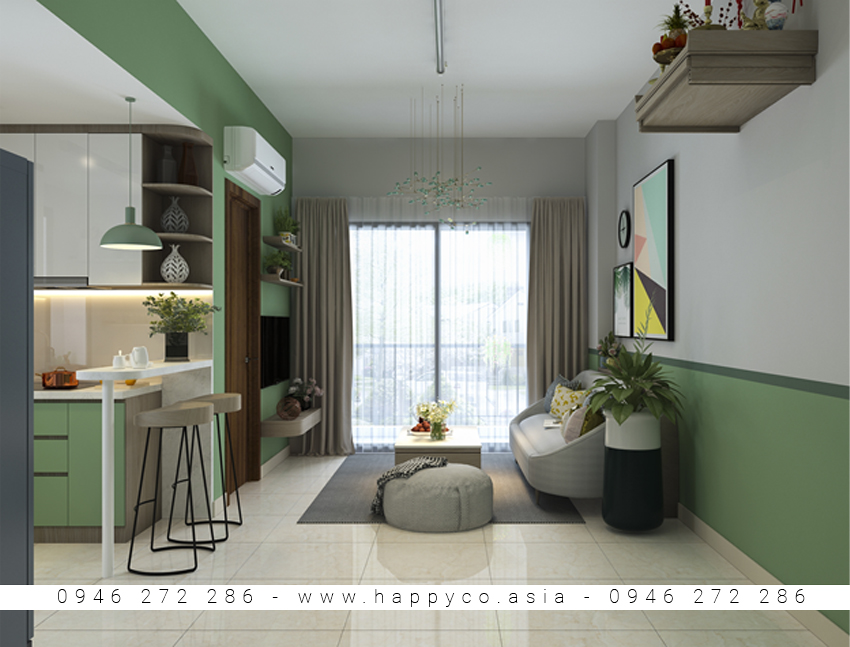 Thiết kế nội thất căn hộ Biên Hòa Universe Complex do Happy Decor phụ trách đã được đội ngũ kiến trúc sư của Happy Decor nghiên cứu kỹ lưỡng để tạo ra không gian sống xanh mát và gần gũi với thiên nhiên cho gia đình chị Lan Hương trong căn hộ có diện tích chỉ 56m2. Dưới đây là những giải pháp thiết kế tối ưu mà chúng tôi đã áp dụng: