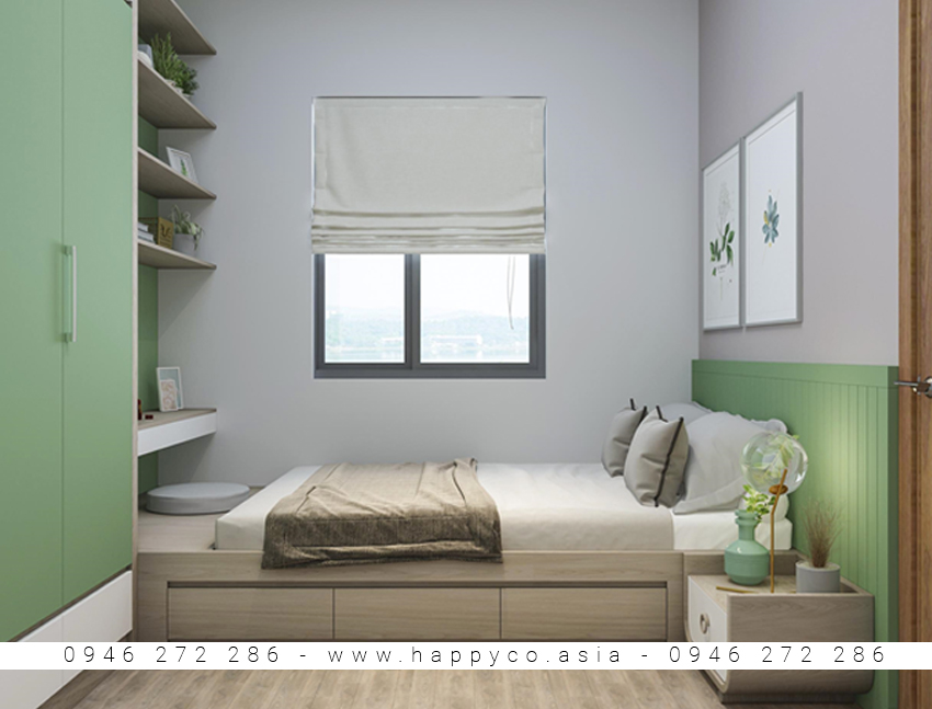Không gian nội thất 2 phòng ngủ theo kiểu thiết kế xanh