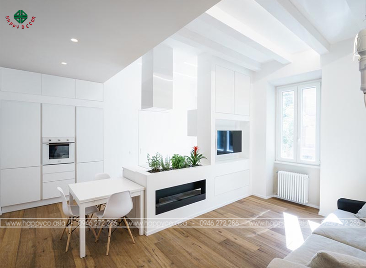 Tối ưu hóa không gian: Với diện tích chật hẹp của chung cư, thiết kế nội thất hiện đại thường tối ưu hóa diện tích sử dụng bằng cách tận dụng không gian trống và thiết kế các sản phẩm đa năng, tiết kiệm diện tích.