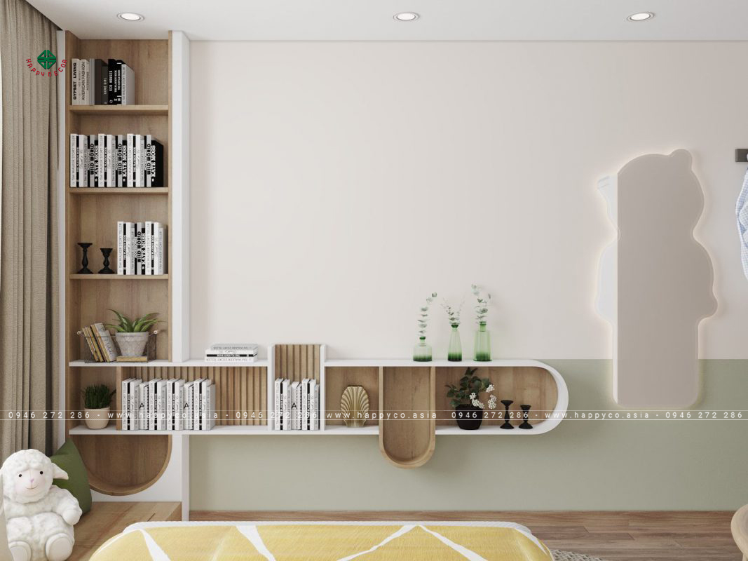 • Chị thích hai Tone màu chính là Tone màu gỗ và sáng, chị và bạn gái bé rất thích đọc sách, nhà chị mỗi năm đọc 100-200 cuốn…
