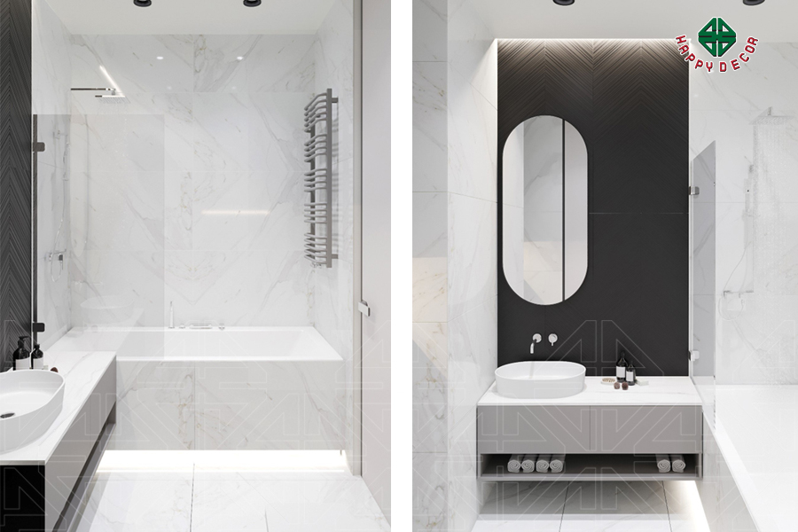 Không gian phòng tắm nhỏ trong phòng ngủ dưới đây bạn có thể tham khảo một số nội thất chung cư hiện đại.