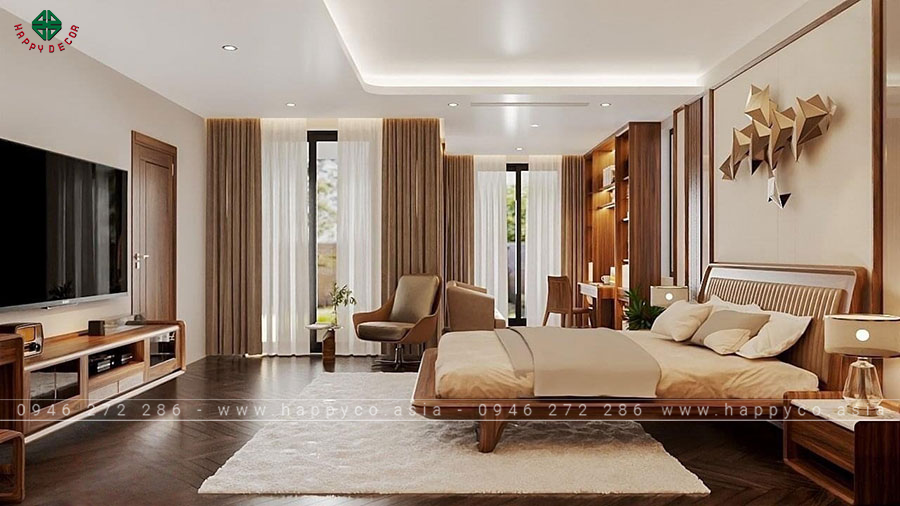Phòng ngủ chính là không gian quan trọng trong ngôi nhà, là nơi chúng tôi mang lại sự thư giãn và tận hưởng giấc ngủ ngon nhất. Để tạo nên không gian sang trọng, ấm cúng và tinh tế, nội thất phòng ngủ Master sử dụng gỗ óc chó cao cấp.