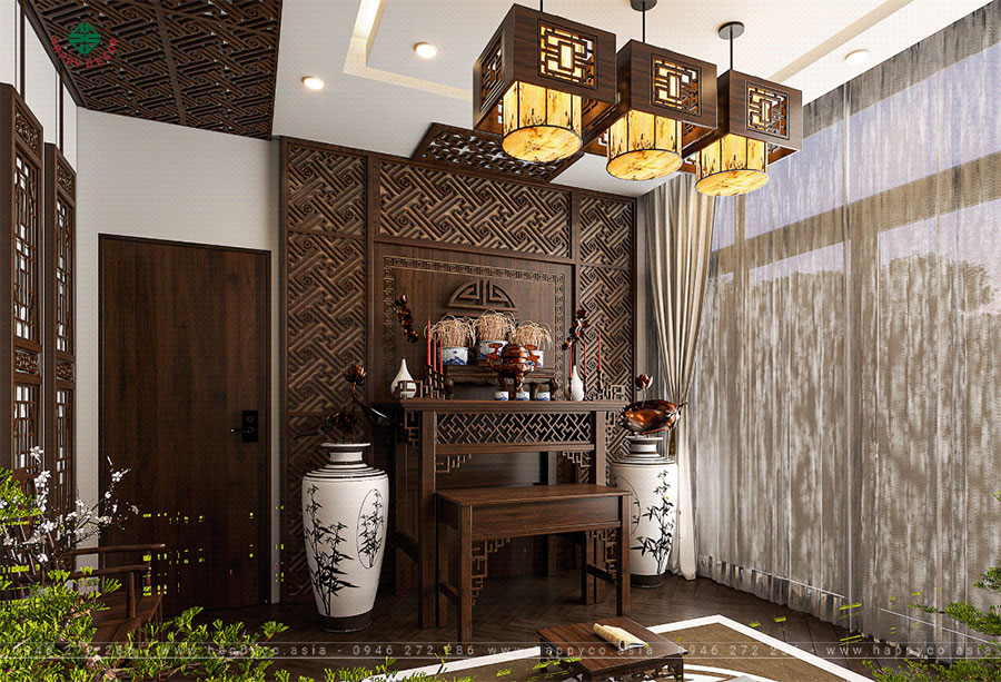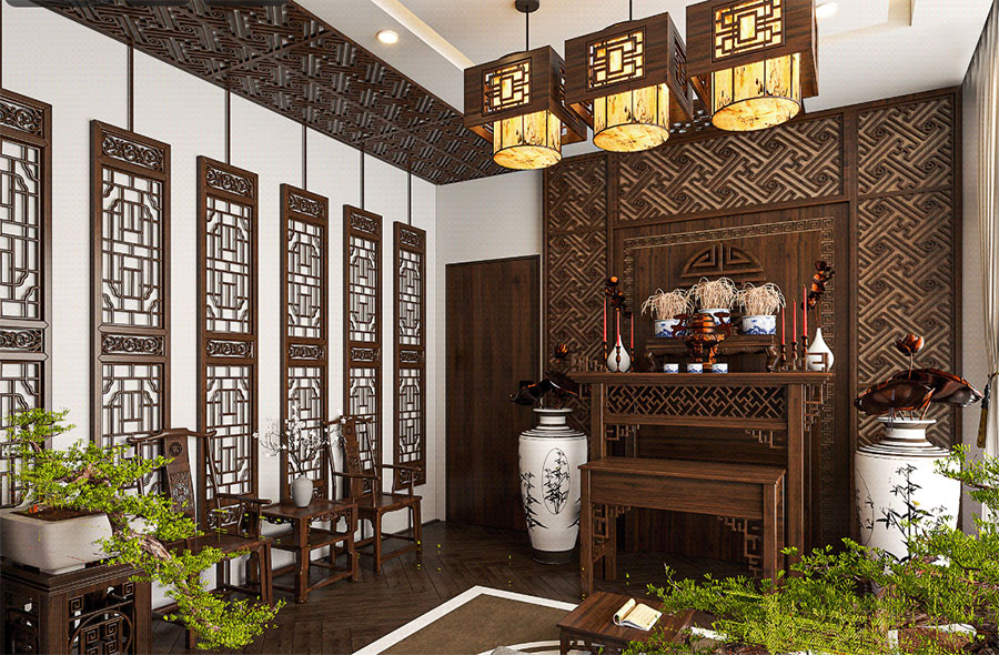 Thiết kế phòng thờ kết hợp yếu tố truyền thống và hiện đại