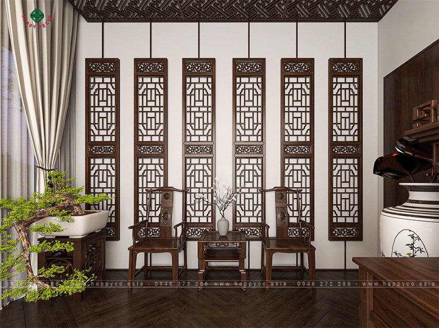 Bố trí thêm 2-3 chiếc ghế hòa thượng Thái và một chiếc bàn nhỏ sẽ là chỗ ngồi lý tưởng để thưởng thức trà đạo.
