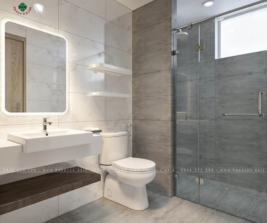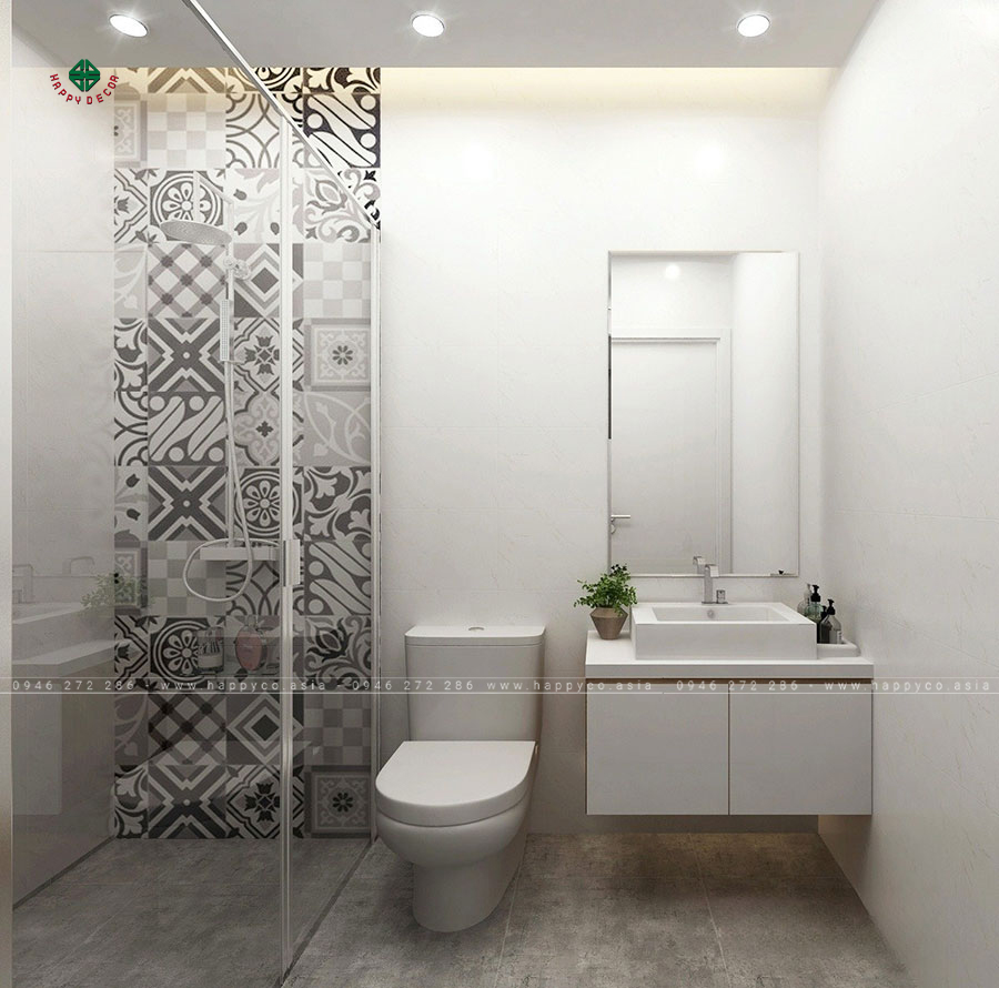 - Thiết kế nội thất phòng tắm chung tầng 1 và tầng 2