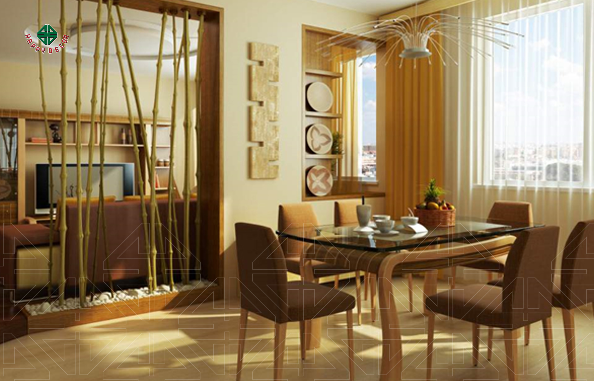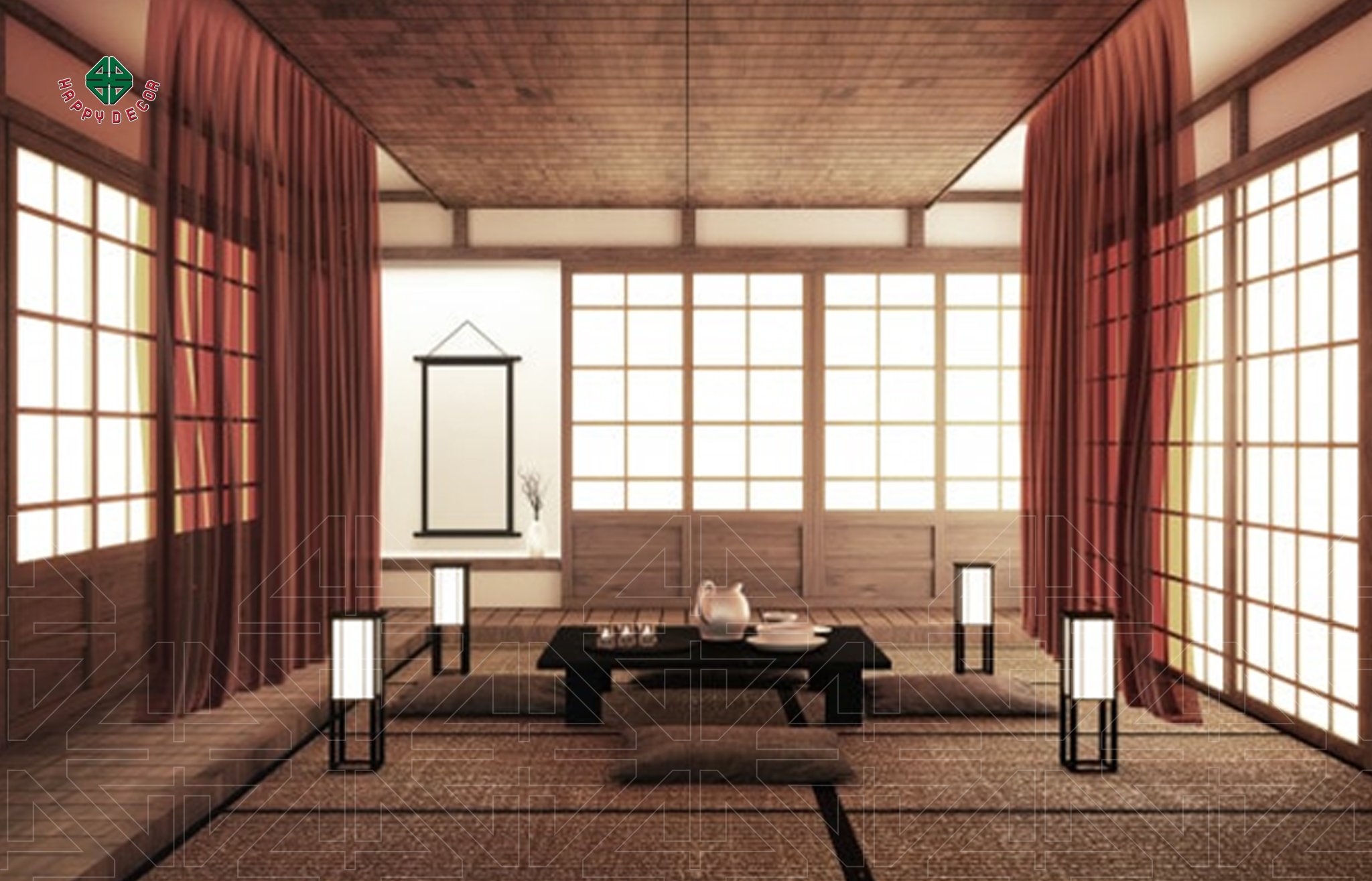 Với thiết kế nội thất Phong cách Nhật Bản đậm chất đồng quê, không gian sẽ được thiết kế tối giản với các món đồ trang trí được chọn lọc kỹ càng, tạo nên sự cân bằng giữa sự đơn giản và tính thẩm mỹ. Những bộ sofa thấp, mềm mại được đặt trên một tấm thảm trải sàn nhẹ nhàng, đem lại cảm giác thoải mái và thư giãn cho không gian.