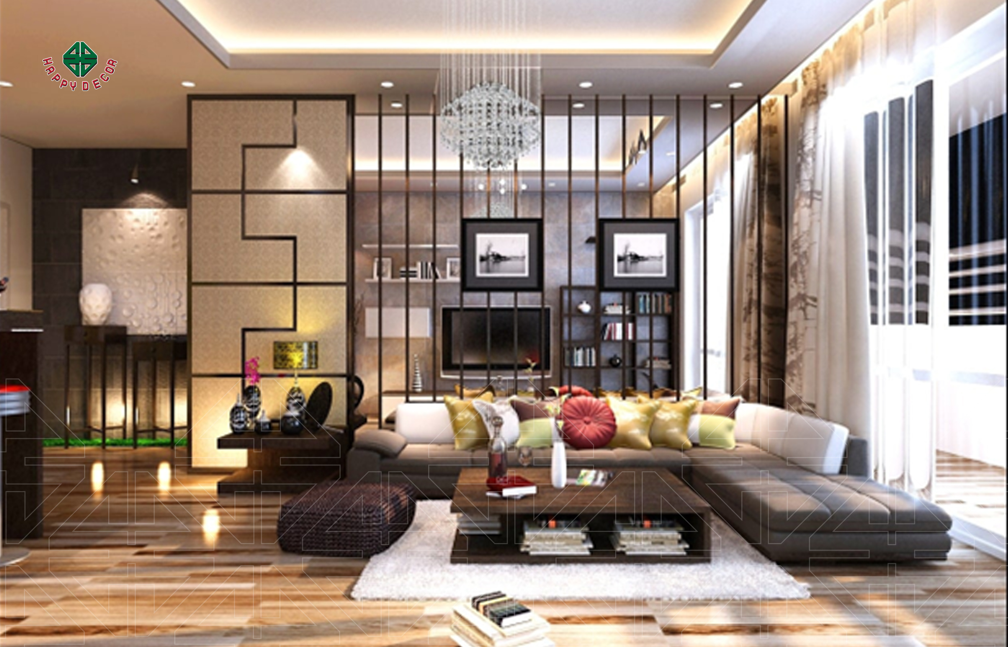 Thiết kế phòng khách Nhật Bản màu nâu trầm