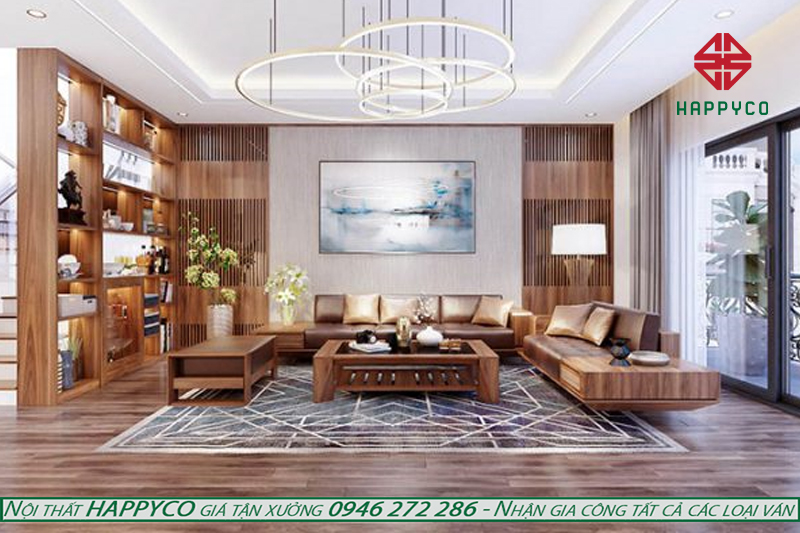 Thiết kế nội thất phòng khách với vật liệu chủ đạo bằng gỗ