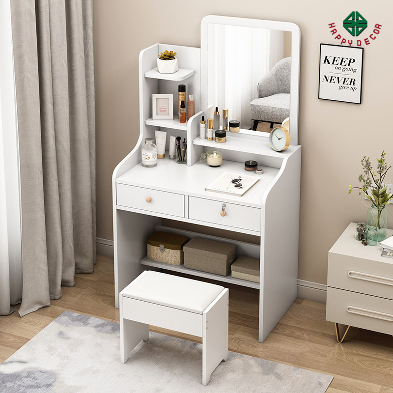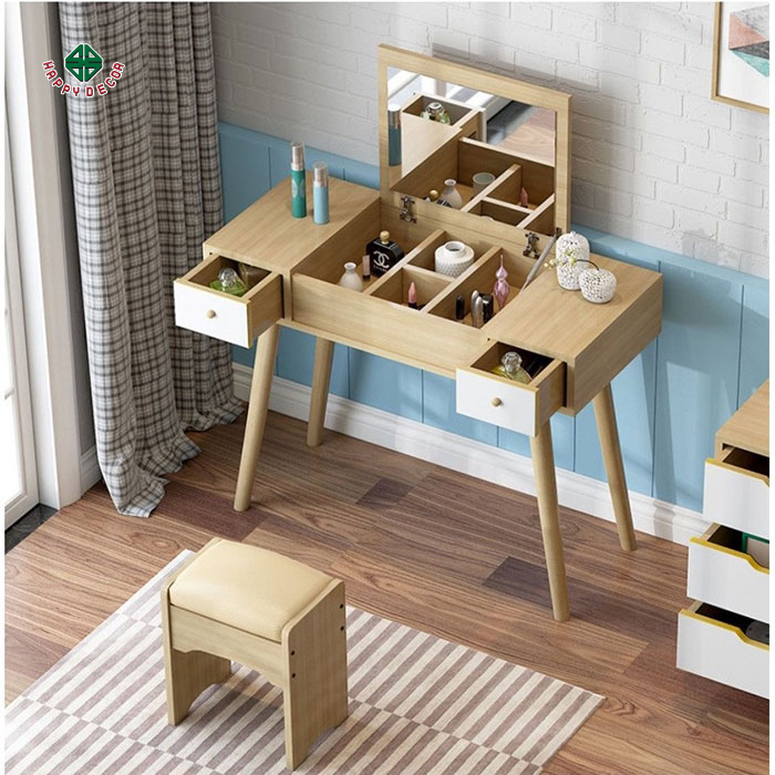 - Bàn trang điểm được trang bị đầy đủ các ngăn kéo và ngăn để đồ, giúp cho việc sắp xếp đồ trang điểm dễ dàng và gọn gàng hơn.